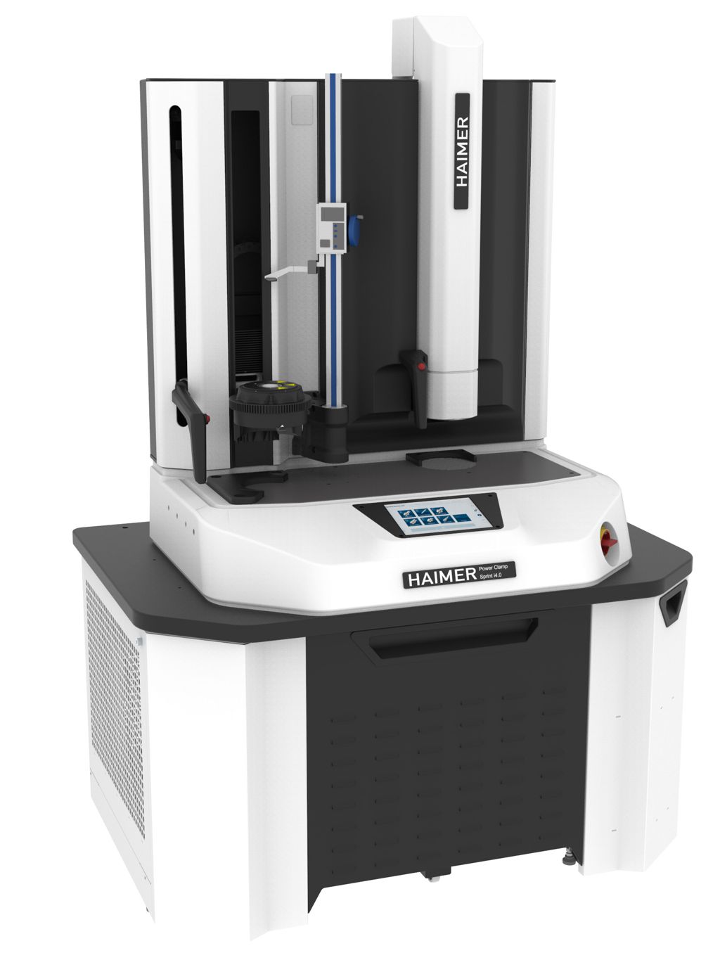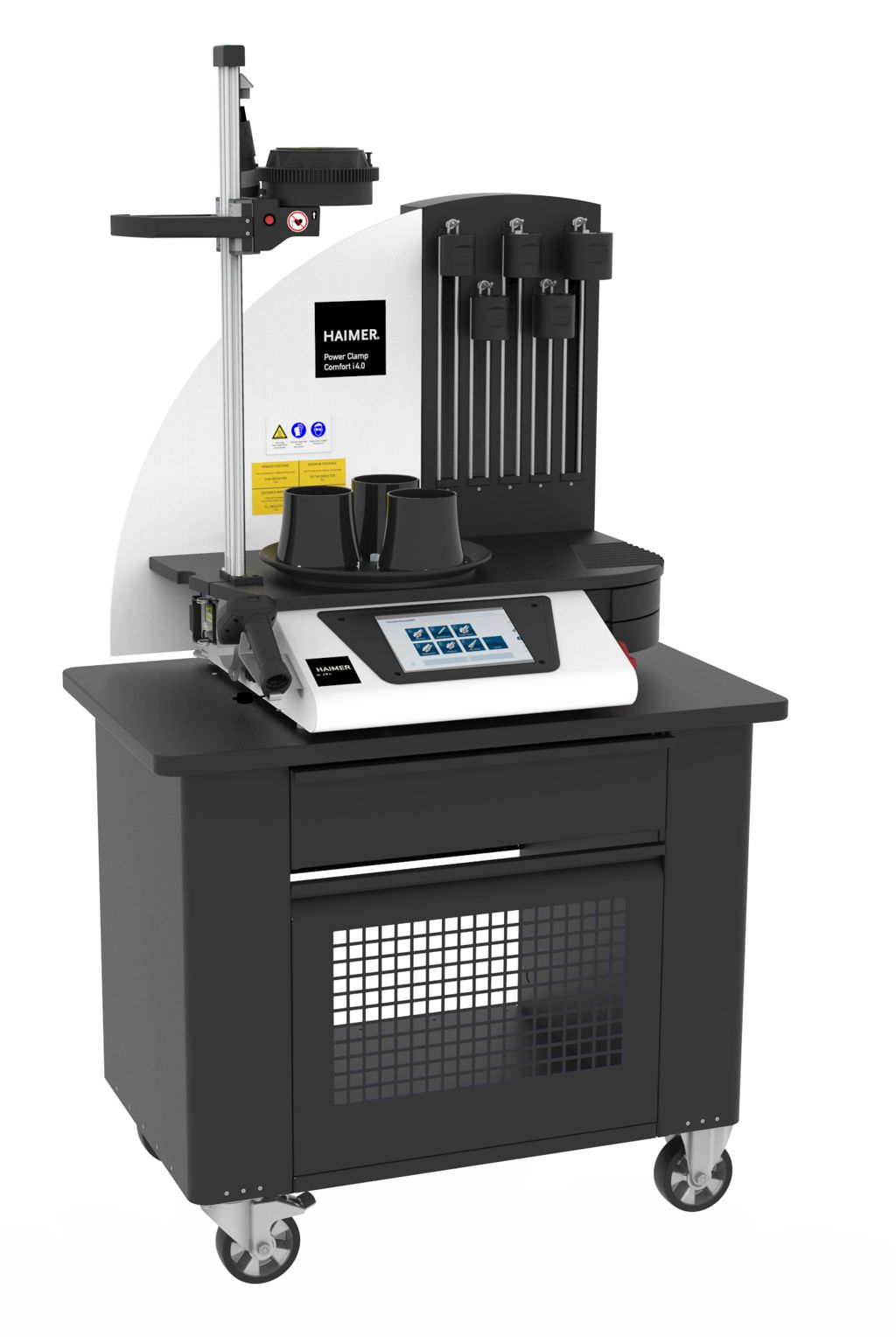 HAIMER hat auch sein Modell Power Clamp Comfort mit dem neuen Display weiterentwickelt. Das durch seine neue Software noch komfortablere Power Clamp Comfort i4.0-Modell bietet – wie schon das Vorgängermodell – eine integrierte Kontaktkühlung mit Temperaturkontrolle. Ein Drehteller mit drei Stationen erlaubt das schnelle Schrumpfen und Kühlen mehrerer Werkzeuge.