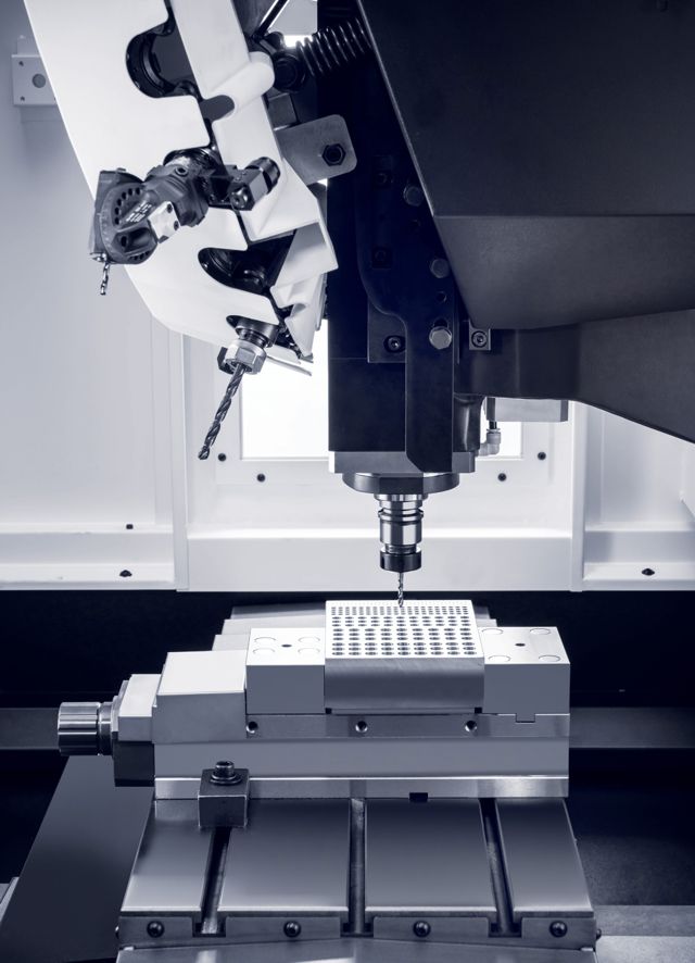 Der stabile 18-fach-BMT-55-Revolver mit Werkzeugantrieb und das 12-fach-Rad-Magazin mit Capto-C4-Aufnahmen sorgen dafür, dass alle Dreh- und Fräsarbeiten in einem Arbeitsgang erfolgen können.