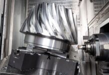 So etwa bei einem großen deutschen Pumpenhersteller. Die vorrangige Aufgabe für SSB-Maschinenbau bestand darin, bisherige kostenintensive Bearbeitungsprozesse zu entschärfen und Umspannvorgänge des Bauteils zu minimieren. Das Tischkonzept der SSB-Anlage beinhaltet einen großen Rundtisch mit zwei getrennten Schwenktischen, die jeweils wieder zwei getrennte Drehtische integriert haben.