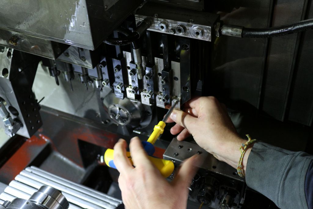 Unter anderem erstellt Stork mit dem NEOSWISS Gewindebuchsen, die ein Kunde in Maschinen für die Lebensmittelindustrie verbaut. Die nur wenige Millimeter großen Teile fertigt der Zerspaner aus drei Meter langen Edelstahl-Stangen. Sind die Bohrungen gesetzt, bringt das Stork-Team mit dem NEOSWISS Innen- und Außengewinde ein und sticht die Buchse ab. Alle 30 Sekunden fällt ein Teil aus der Maschine, etwa 100.000 Stück produziert Stork pro Jahr. Das Los läuft im Zweischichtbetrieb und mit etwa 10.000 Teilen pro Woche – also insgesamt zehn Wochen. „Wenn ich da bei jedem Werkzeugwechsel zehn Minuten einsparen kann, kommt einiges zusammen,“ freut sich Björn Birkholz.