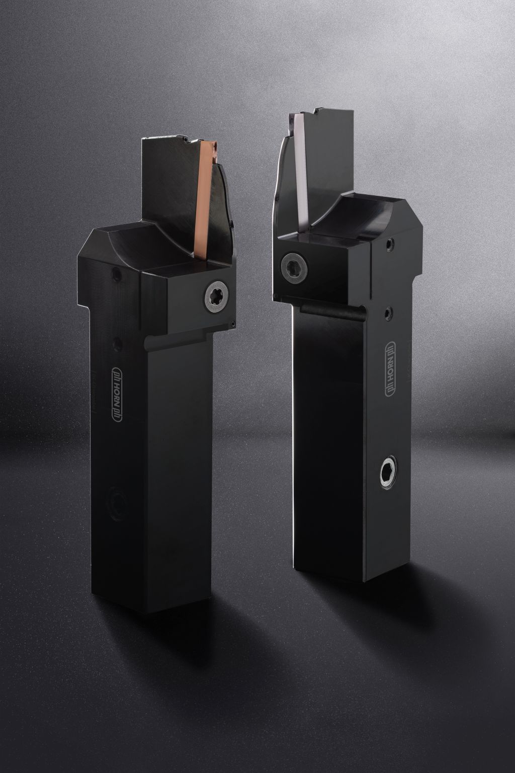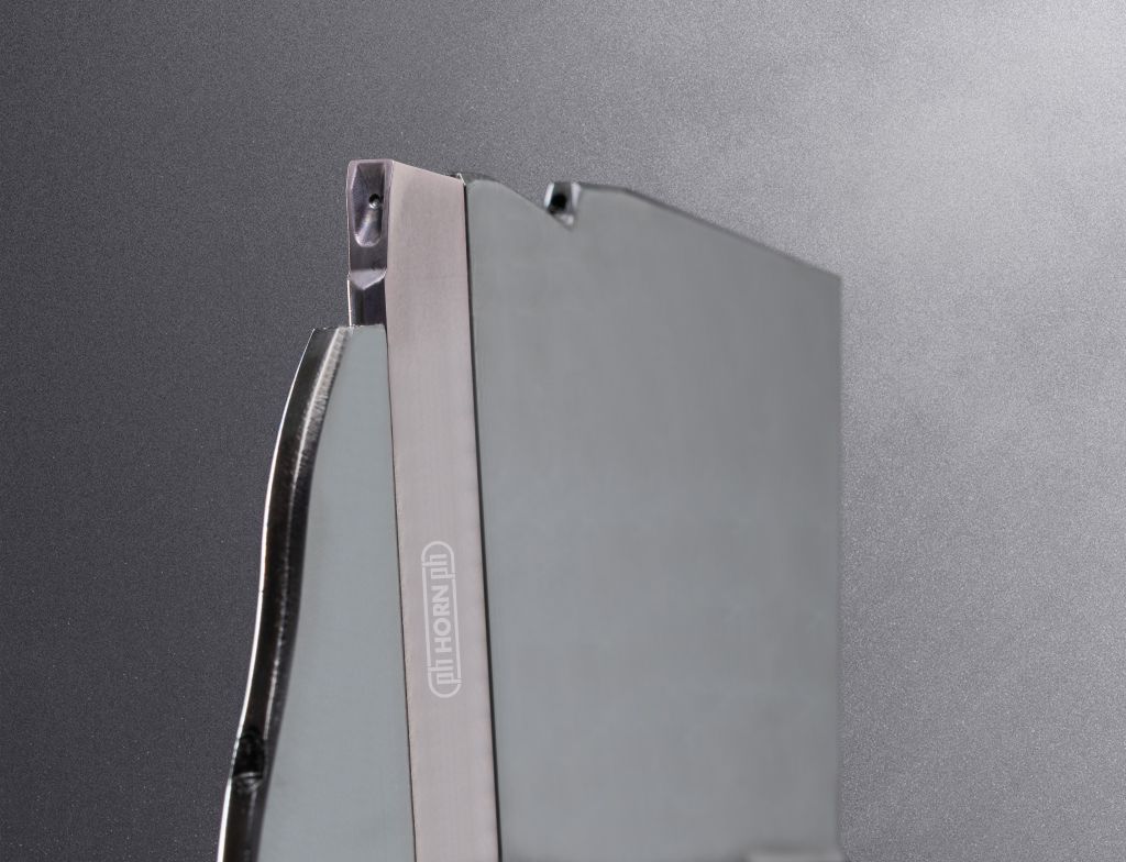 Die Schneidplatten sind in den Schneidbreiten 2 mm und 3 mm verfügbar. Die Eckenradien liegen bei 0,2 mm beziehungsweise 0,3 mm. Die gesinterte Geometrie EN sorgt für eine prozesssichere Abfuhr der Späne. Je nach zu zerspanendem Werkstoff sind die Schneidplatten in den Sorten AS45 sowie IG65 verfügbar. Für die stabile Klemmung sorgen Quadratschafthalter in den Größen 20 mm x 20 mm sowie 25 mm x 25 mm. Zudem bietet Horn als Halter auch Kassetten für das modulare Stechsystem sowie verstärkte Stechschwerter. Alle Varianten sind mit innerer Kühlmittelzufuhr ausgestattet.
