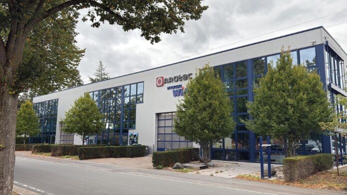 25-jähriges Jubiläum. Zum anderen weiht ARO-tec an diesem Tag sein neues Domizil ein. An dem neuen, zentral und verkehrsgünstig gelegenen Standort verfügt das Unternehmen neben einer großzügigen Bürofläche über eine 1.000 Quadratmeter große, komplett erneuerte Halle. Diese beherbergt nicht nur einen Showroom, der Platz für eine ständige Präsentation von bis zu 15 Maschinen und ein Lager bietet, sondern auch eine Lounge mit Gästebereich.
