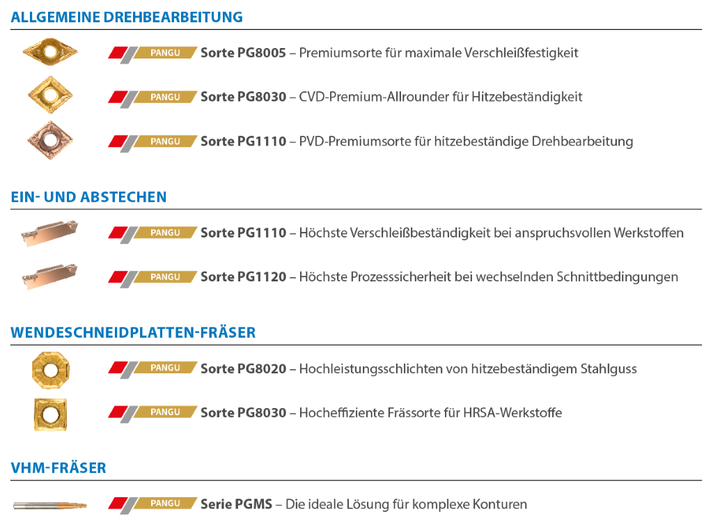 Die PANGU Sorten von ZCC Cutting Tools in der Übersicht/ Bild: ZCC