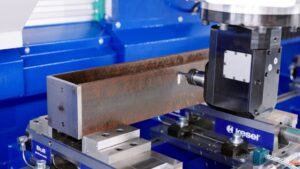 Ein zentrales Merkmal der neuen Maschine ist der speziell auf die Kundenanforderungen angepasste Winkelkopf „WK360“. Er wird über die vierte Achse in die Bearbeitung eingebunden und ermöglicht die vollständige 5-Seiten-Bearbeitung von Werkstücken und Profilen bis zu 12 Metern Länge – ohne zeitaufwändiges Umspannen. Die stufenlose Schwenkbarkeit um 360 Grad sorgt dabei für einen flexiblen Zugriff auf alle relevanten Profilseiten. „Das Auffälligste ist sicherlich der Winkelkopf, der über eine automatische Werkzeugwechselfunktion verfügt und eine umfangreiche 5-Seiten-Bearbeitung ermöglicht. Damit reduzieren unsere Kunden ihre Bearbeitungszeit deutlich“, erläutert Geschäftsführer Erwin Röder.