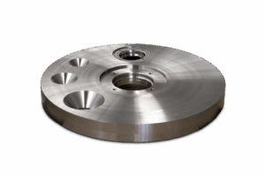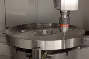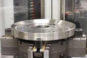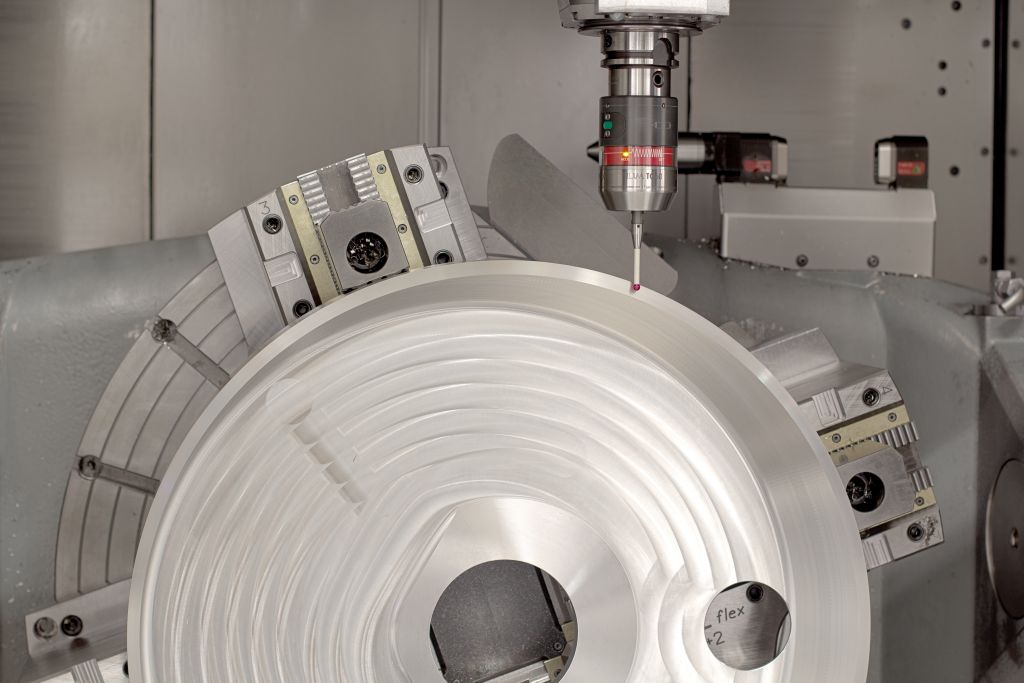 Auf einem Dreh-Fräszentrum HERMLE C42 MT findet sich ein starker Hinweis darauf, dass Bott höchste Präzision liefert: Hier lässt Hermle selbst ein zentrales Bauteil seiner Maschinen fertigen. Weitere Teile, die auf dieser Maschine gefertigt werden, sind sogenannte Kombinationsflansche in verschiedenen Größen, welche für ein nahegelegenes Unternehmen zerspant werden. Diese hochkomplexen Dreh-Fräs-Teile waren ein Grund dafür, dass sich die Bott-Fertigungsspezialisten mit BLUM schnell einig wurden, als Betatester an der Entwicklung der Mess- und Automatisierungssoftware FormControl X teilzuhaben.