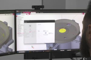 Der Messjob wird dann auf den Server übertragen und von der Maschine zur Abarbeitung der Messpunkte abgerufen. Sehr gut gefallen hat Leins, dass er die in SolidWorks erstellten 3D-Modelle im CAM-System SolidCAM mit den Geometrien der Spannmittel ergänzen und diese Gesamtgeometrie dann in FormControl X übergeben kann. So ist die Spannsituation in FormControl X komplett abgebildet und bereits beim Erstellen der Messprogramme kann eine Kollision des Messtasters verhindert werden.