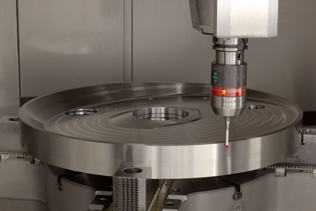 Im Verlauf dieser hochkomplexen Bearbeitung werden bei Bott immer wieder wichtige Maße überprüft. Dazu wird der Messtaster wie ein Werkzeug eingewechselt und die Messpunkte abgefahren. (Bild: Blum-Novotest)