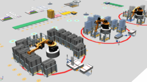 Die dynamische Kommissionierung hingegen verfolgt ein »Ware-zum-Roboter«-Prinzip und nutzt fahrerlose Transportsysteme (FTS) sowie ein anlagennahes Lager für hohe Flexibilität und Variantenvielfalt. Die Skalierung erfolgt durch einfache Erweiterung der Roboterzellen und FTS-Flotte, wobei der Staplerverkehr vollständig entkoppelt ist. Die Softwarelösung AutoLog, eine gemeinsame Entwicklung des Fraunhofer IWU und der Volkswagen AG, ermöglicht bei Volkswagen Slovakia die Konfiguration und Steuerung solcher Zellen im Self-Service und optimiert die Prozesse mit intelligenten Algorithmen. AutoLog erlaubt das initiale Design von Roboterzellen, steuert Roboter, Sicherheitstechnik und FTS, minimiert Wartezeiten und integriert Werkzeuge zur Fehleranalyse. Die virtuelle Inbetriebnahme erfolgt über eine Software-in-the-loop-Simulation zwischen AutoLog und einem Simulationsmodell in Siemens Plant Simulation. Dies ermöglicht die frühzeitige Bewertung neuer Anlagenkonfigurationen noch vor deren Betrieb.