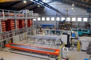 Die neue Anlage besteht aus zwei Lagersystemen von KASTO: das Überfahrlager UNITOP mit einer Einlagerlänge von sechs Metern und das Turmlagersystem UNITOWER mit einer Einlagerlänge von zwölf Metern sowie zwei Sägezentren der KASTOwin-Serie (F 3.3 und A 3.6). Diese Konstellation ermöglicht es Brütsch/Rüegger, das Langgut in einer Halle platzsparend zu speichern und zu bearbeiten. Beim Überfahrlager bewegt sich ein Regalbediengerät über die in Kassetten abgelegten Metalle und lagert sie schnell ein und aus.