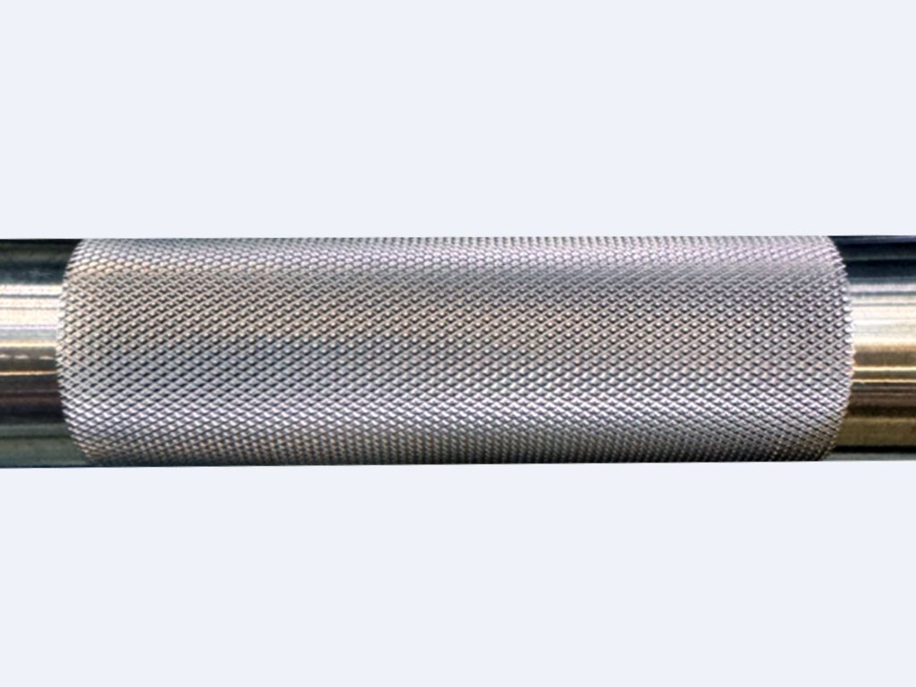 So wurde für einen führenden amerikanischen Hantelstangenhersteller eine Neukonstruktion eines tangential arbeitenden Werkzeughalters der Marke QUICK in Verbindung mit speziellen Rändelrollen umgesetzt. Darüber hinaus bestand kundenseitig der Wunsch, die Produkte zusätzlich mit Text zu markieren und die Bereiche zwischen den Griffflächen optisch über ein gezieltes Diamantglätten zu verbessern.