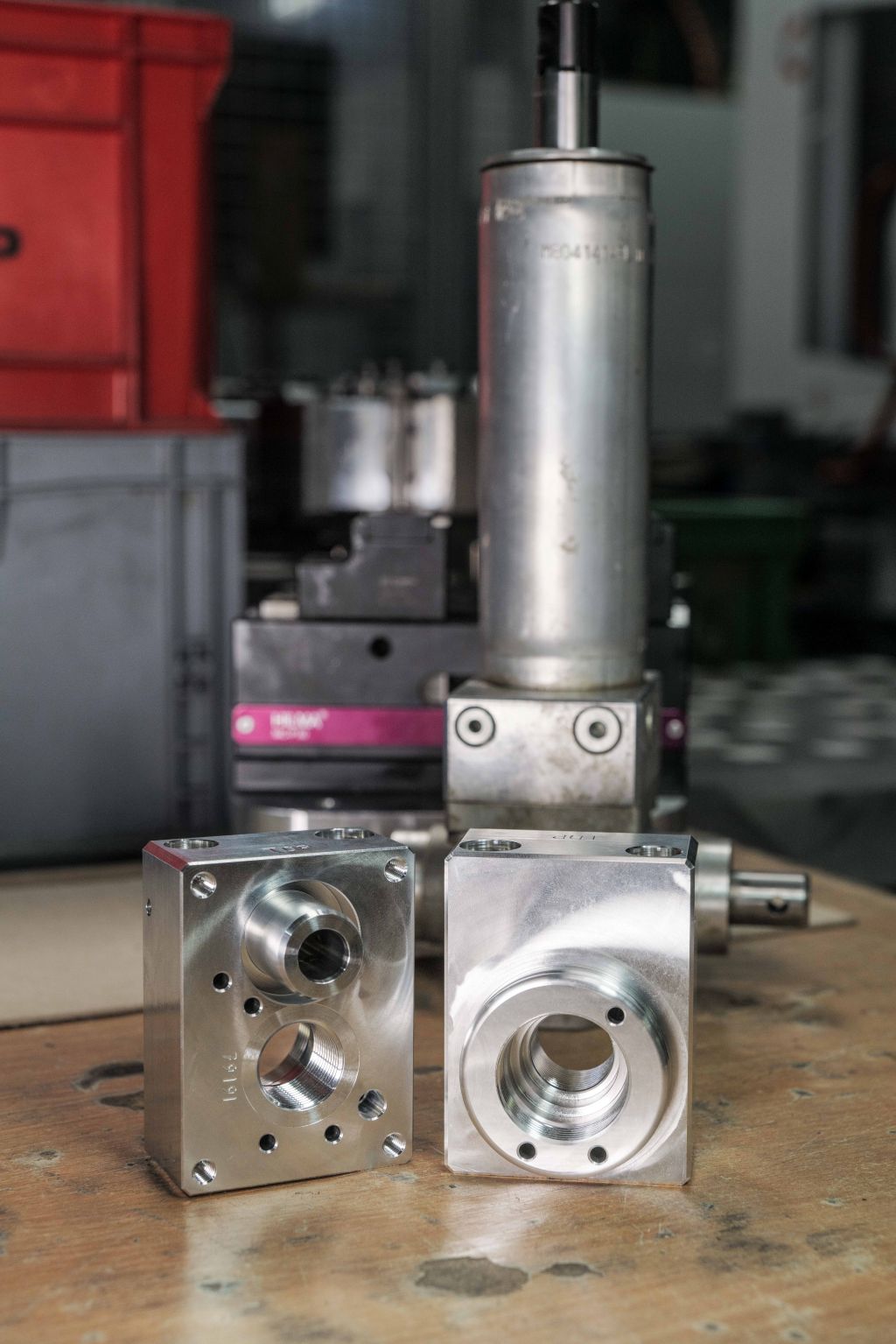 Ein sicherheitsrelevantes Pumpkolbengehäuse aus einer AlCuMg1 Aluminiumlegierung, das zunächst in Hubgeräten zur Höhenverstellung von Montagearbeitsplätzen zum Einsatz kam und heute in der vierten Generation auch in der Höhenverstellung von OP- und Instrumententischen, Therapieliegen sowie medizinischen Betten verwendet wird, hat ganz spezielle Qualitätsanforderungen. Durch den Einsatz im Medizinbereich wird bei ROEMHELD eine stetige 100 %-Prüfung durchgeführt, da für dieses Bauteil höchste Standards gelten. Für die Fertigung dieser Komponente wurde deshalb die Firma Weigel & Schwarz mit ihrem Know-how und dem hohen Qualitätsbewusstsein beauftragt.