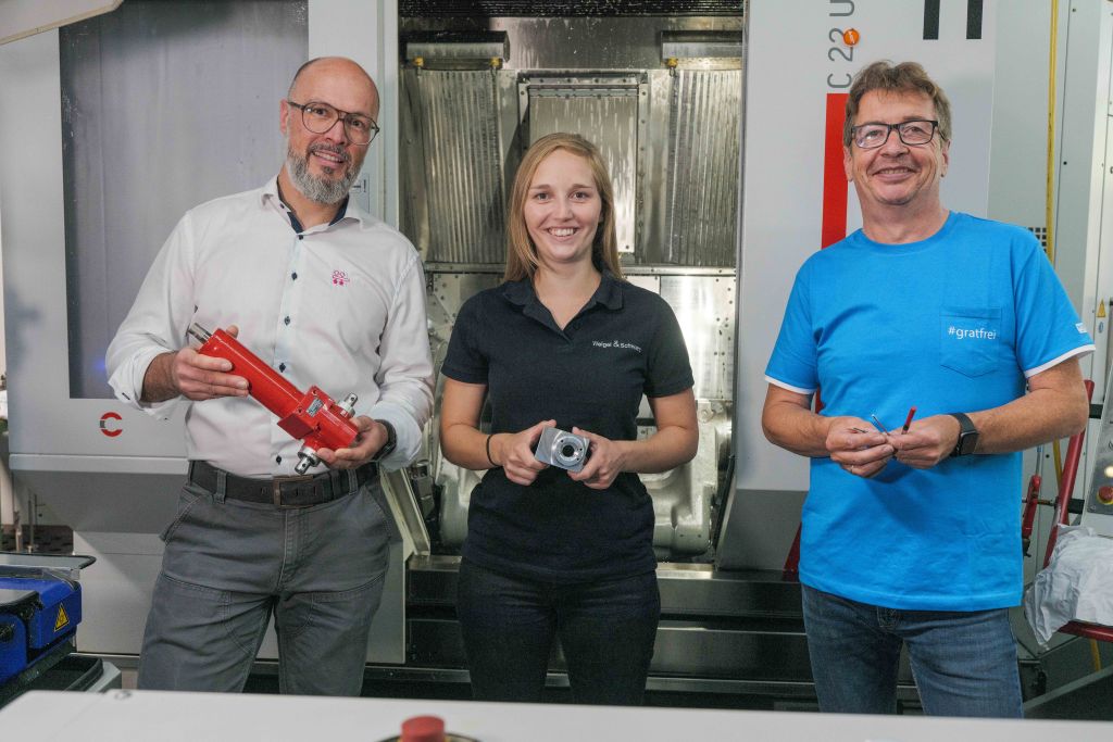 Der Lohnfertiger Weigel & Schwarz in Wetzlar hat mit lediglich drei Werkzeugtypen des Entgratspezialisten KEMPF die Entgratung von Hydraulikkomponenten des Kunden ROEMHELD – die mit einer Vielzahl von (Quer-) Bohrungen durchzogen sind – in den bisherigen Ablauf integriert und die Fertigung somit komplett automatisiert.