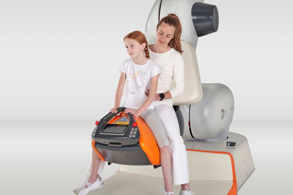 Der Patient sitzt dabei auf einem ergonomischen Sitz, der einem Sattel nach empfunden ist und muss aktiv auf die Roboterbewegungen reagieren. Dieses Training hilft dabei, den Rumpf zu stabilisieren, das Becken zu mobilisieren, Spasmen zu reduzieren und das Gleichgewicht zu verbessern. Zudem kann durch Muskelstimulation eine sogenannte Neuroplastizität im Gehirn induziert werden, was dabei hilft, verlorene motorische Funktionen neu zu erlernen.