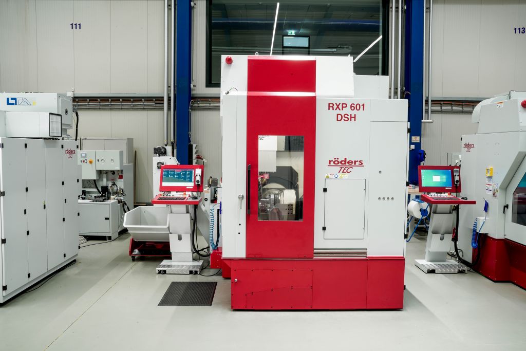 Die 5-achsige RXP 601 DSH im Vorführzentrum von Röders, auf der im Vorfeld auch der überwiegende Teil der Beispielbaugruppe gefertigt wurde. Bild: Moldino