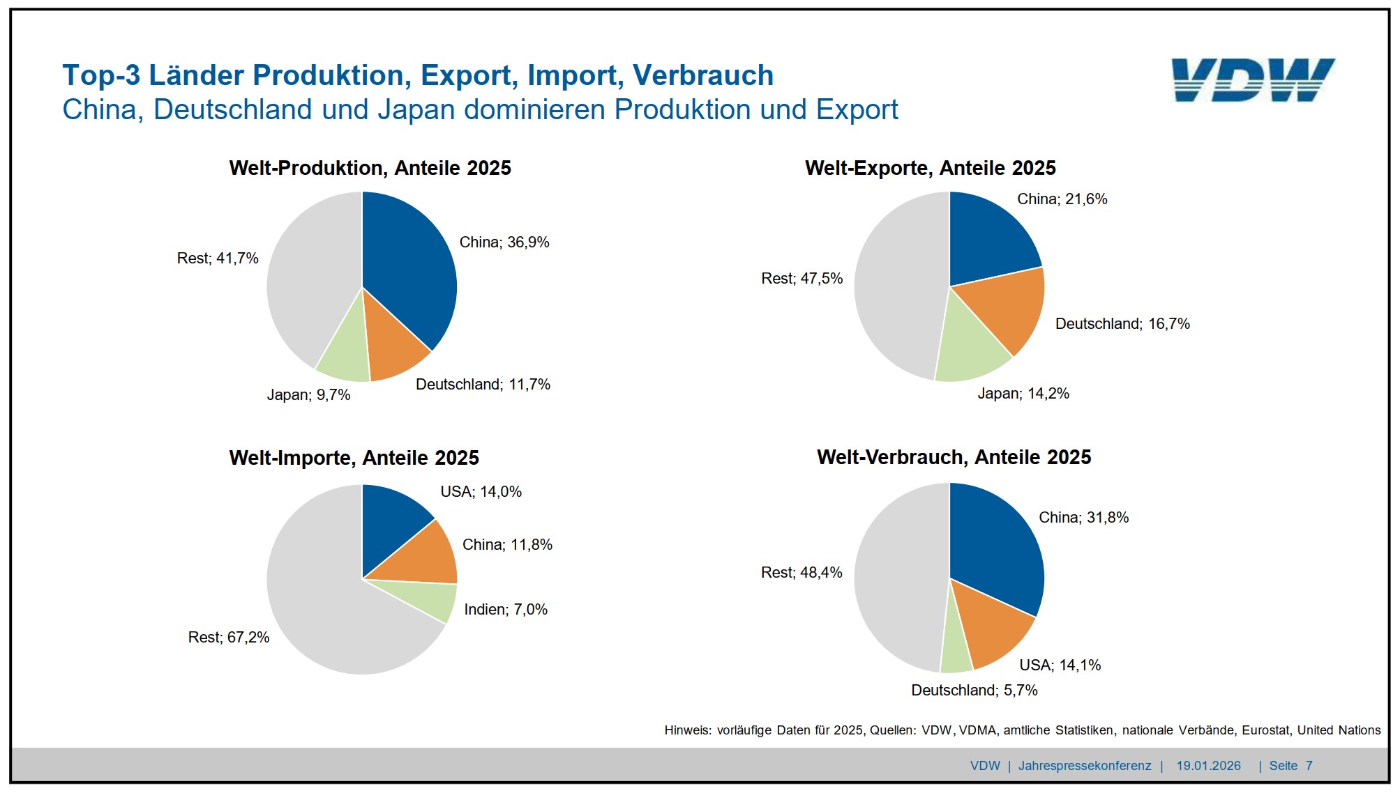 Top-3 Länder Produktion, Export, Import, Verbrauch Quelle: VDW