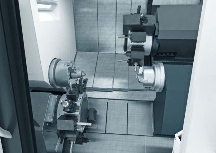 Insgesamt bis zu 36 Werkzeugpositionen auf zwei Werkzeugträgern, die einzeln oder gemeinsam an den beiden Spindeln arbeiten können, verleihen ihr maximale Flexibilität. Die hochsteife Maschinenkonstruktion, das ganzheitliche Kühlkonzept und Wegmesssysteme von Magnescale in den beiden X-Achsen, der Y-Achse und optional auch in der Z-Achse gewährleisten eine präzise Bearbeitung. Die Positioniergenauigkeit liegt bei 6 µm bzw. 12“, sodass auch kleine und mittelständische Unternehmen den Anforderungen anspruchsvoller Branchen gerecht werden.