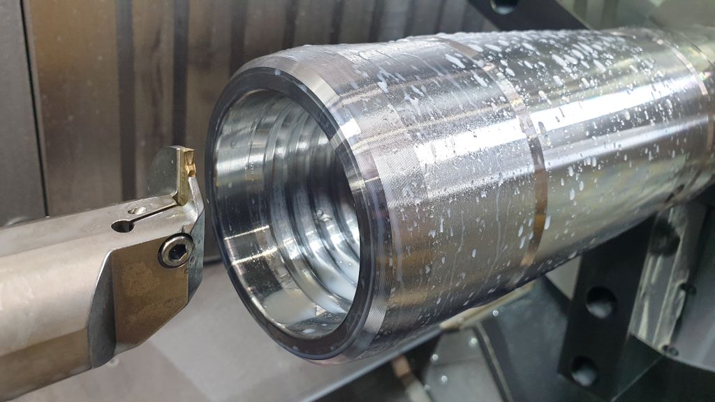 Was nach einer kostengünstigen Fertigung klingt, hat Sysbohr allerdings zunächst vor große Probleme bei der Herstellung von Trapezgewinden gestellt, die für fast alle Bauteile benötigt werden. Es fehlte an der erforderlichen Prozesssicherheit, weil es vor allem bei dünnen Materialstärken immer wieder zu Schwingungen kam, die deutliche Rattermarken an den Innengewinden hinterließen und schlechte Oberflächenqualitäten erzeugten. Mitunter stoppte die automatische Produktion nach wenigen Teilen oder sie lief trotz einer beschädigten Schneidplatte komplett durch und produzierte Ausschuss.