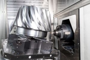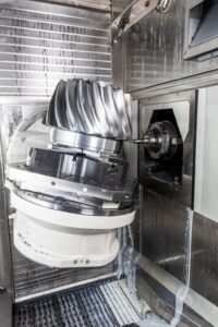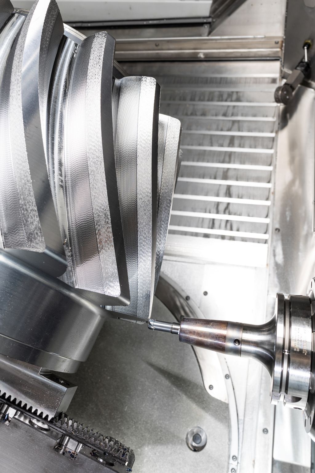 Das Ziel war die Umstellung vom Schälen zum 5-Achs-Simultan-Schrupp-Fräsen, um die Bearbeitungszeit nahezu zu halbieren. „Ein weiterer wichtiger Punkt war die Standzeit der Werkzeuge. Hier legten wir fest, dass der Standweg eines Werkzeugs mindestens ein Bauteil betragen muss“, so Glaser.