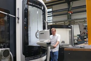 CAM-Programmierer Oliver Oberkoch weist darauf hin, dass BERG die Vorteile der Werkzeugvoreinstellung schon seit den 1980er Jahren nutzt: „Damals hatten wir noch manuelle Geräte, um unsere Werkzeuge vor dem Prozess einzustellen und zu vermessen. Vor knapp 20 Jahren investierten wir dann in ein teilautomatisiertes Voreinstellgerät Microset UNO, das bereits eine gewisse Datenübertragung ermöglicht hat. Doch unser derzeitiges Highlight ist das im letzten Jahr beschaffte, vollautomatische HAIMER Microset Voreinstellgerät VIO linear, das auch den bidirektionalen Datenaustausch mit unserem Werkzeug- und Datenmanagementsystem beherrscht.“