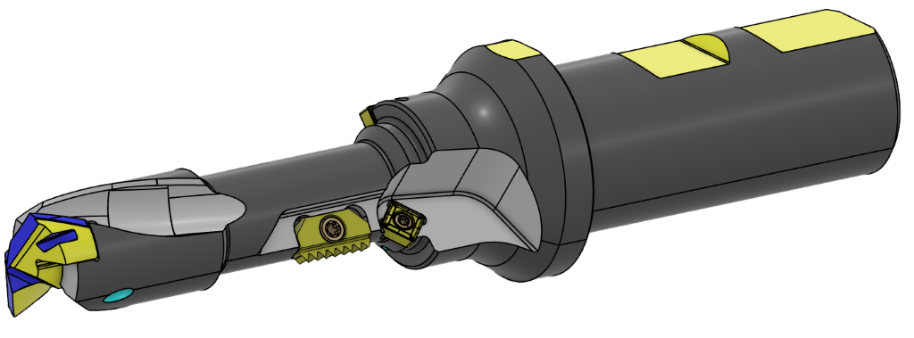 Beim modularen SUMOCHAM lassen sich sowohl die Bohrkörper als auch die -köpfe modifizieren. ISCAR kann die Bohrkörper so konstruieren, dass mehrere Bearbeitungsschritte in einem Werkzeug zusammengefasst sind, etwa Aufbohren, Planen, Fasen oder Stufenbearbeitungen. Für noch mehr Flexibilität bei der Bearbeitung sind auch Lösungen mit Kassetten möglich, mit denen sich beispielsweise die Länge von Bohrstufen und der Durchmesser einstellen lässt. Auch bei den Bohrköpfen hat der Anwender zahlreiche Modifikationsmöglichkeiten. Abweichende Durchmesser, spezielle Spitzenwinkel, kleine Stufen, besondere Eckenradien oder alternative Beschichtungen für eine optimierte Standzeit gehören zu den häufig umgesetzten Modifikationen. „Wir können die Werkzeuge ganz exakt auf die jeweilige Anwendung abstimmen“, sagt Patrick Muller. „Im Grunde gibt es hier nur wenige technische Beschränkungen.