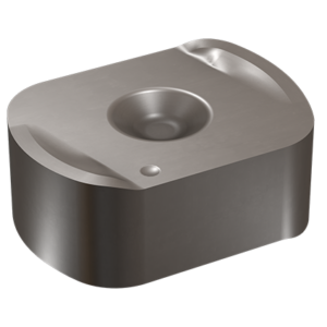 Die dicken, doppelseitigen WSP bestehen aus IS35 SIALON. Ihre hohe Kantenstabilität, der große Radius an der Schneide sowie die robuste Bauweise sorgen für hohe Prozesssicherheit. Die WSP lassen sich schnell, einfach und ohne lose Ersatzteile wechseln. Die CERMILL-WSP sind in zwei Varianten verfügbar: Die EFN WDNX-Platten besitzen vier stabile Schneiden mit einem Radius von sieben Millimetern und ermöglichen Schnitttiefen bis 1,5 Millimeter. Eine Vertiefung in der WSP sorgt für eine stabile Klemmung im Plattensitz. Für diesen Plattentyp sind Schaftfräser in Durchmessern von 25, 32 und 40 Millimetern mit drei, vier und fünf Zähnen sowie ein Planfräser in 50 Millimetern Durchmesser mit fünf Zähnen erhältlich. Die 32er- und 40er-Fräser verfügen über eine innere Kühlmittelzufuhr direkt auf die Schneiden.